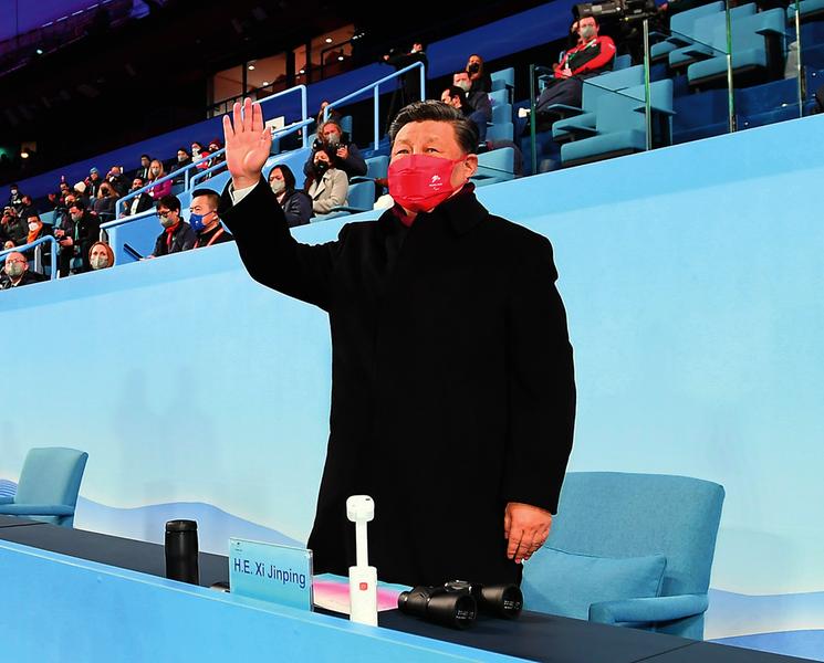 3月13日晚,北京2022年冬残奥会闭幕式在国家体育场隆重举行。这是国家主席习近平在主席台上向大家挥手致意。    新华社记者 谢环驰 摄