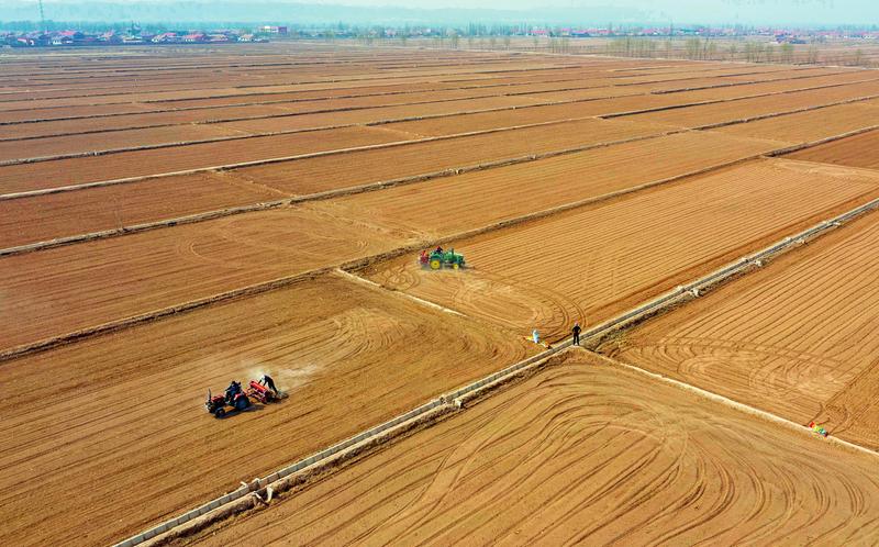 在宁夏吴忠市同心县丁塘镇张滩村,农民驾驶播种机播种小麦(3月11日摄,无人机照片)。 时下正值春耕备耕时节,宁夏吴忠市同心县的农民抢抓农时,播种小麦。据了解,今年同心县春小麦种植面积预计在6万亩以上。同心县通过加强技术指导服务、调整种植结构、强化农资市场监管等方式,认真落实耕地保护目标责任制,保障粮食和重要农产品生产供给。新华社发