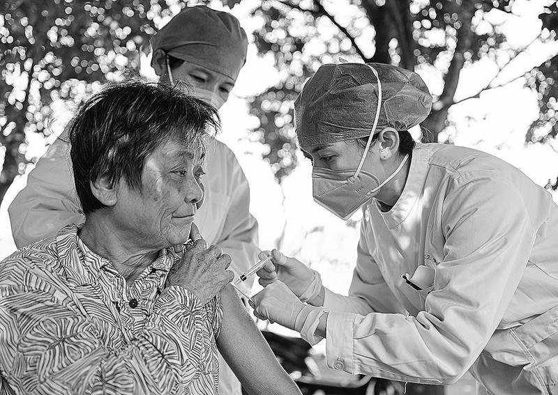 12月22日,在文昌市会文镇湖丰村,医护人员上门为老年人接种新冠疫苗。连日来,海南省文昌市组织医护人员为老年人上门接种新冠疫苗,提供便民服务。 新华社发
