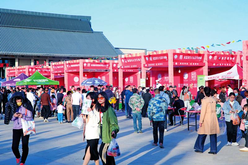 早茶文化节期间,吴忠科技广场上人流如织,吴忠特色食品吸引广大消费者前来品鉴(摄于4月28日)。 本报记者吴海燕