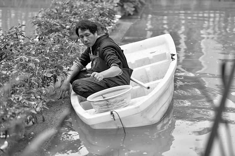 5月11日,在长沙市望城区高塘岭街道湘江村,农民采摘水上种植的辣椒。近年来,在湖南省长沙市望城区高塘岭街道湘江村,当地农民利用“水上种植”技术,在池塘的水面上进行水稻、蔬菜、花卉种植,使鱼虾与水稻、蔬菜、花卉共生互补,通过“一水两用、一水两收”,实现资源和空间的充分利用,助力农民增产增收。新华社发