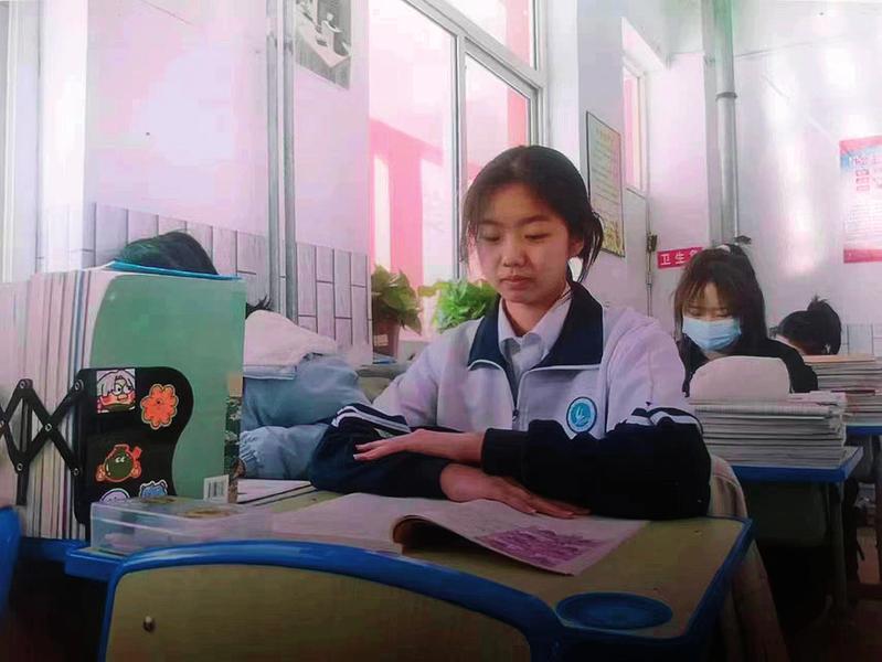 郭富欣。 今年16岁的郭富欣是吴忠市兰亭中学高一(13)班的学生。她性格活泼开朗,学习成绩优秀,凭借孝老爱亲的感人事迹获得了2023年度吴忠市“新时代好少年”称号。