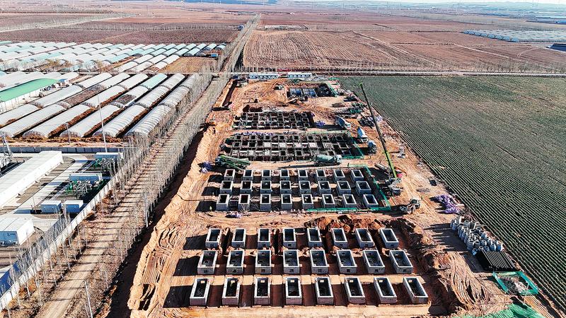 宁夏国开储新能源有限公司同利100兆瓦/200兆瓦时共享储能电站项目正在建设当中。项目投产后,年充放电量6000万千瓦时,年均销售收入4700万元,年均利税670万元(摄于11月15日)。