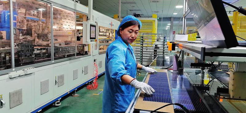 作为风能、光能富集地区,同心县围绕资源优势加速布局清洁能源,推进高质量发展。12月26日,在同心工业园区清洁能源产业园英利新能源(宁夏)有限公司生产车间,一台台全自动化设备高速运转,工人们正有条不紊地进行光伏组件生产制作。