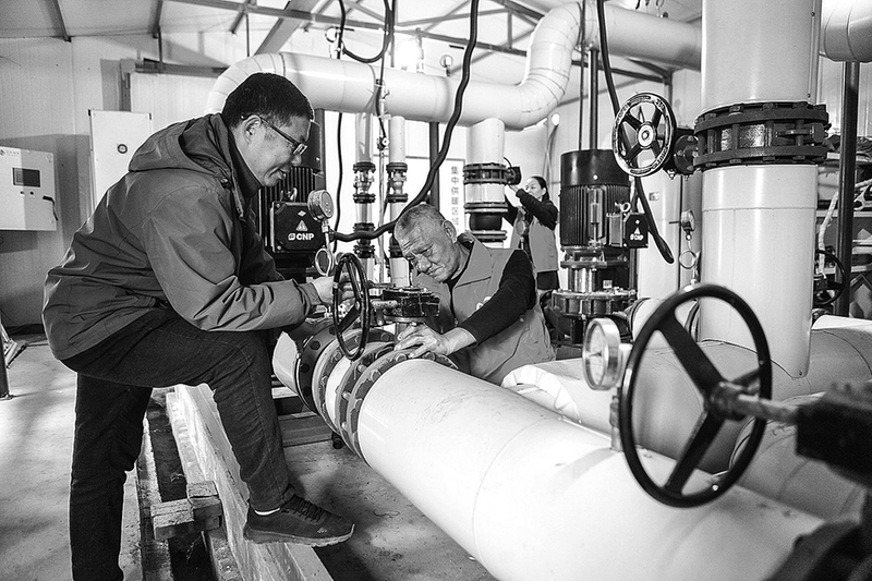 10月19日,在河南省焦作市博爱县九街社区,专业技术人员对集中供暖站的设备、管道开展全面检修维护。 随着气温降低,各地提前部署、多措并举,确保市民温暖过冬。 新华社发