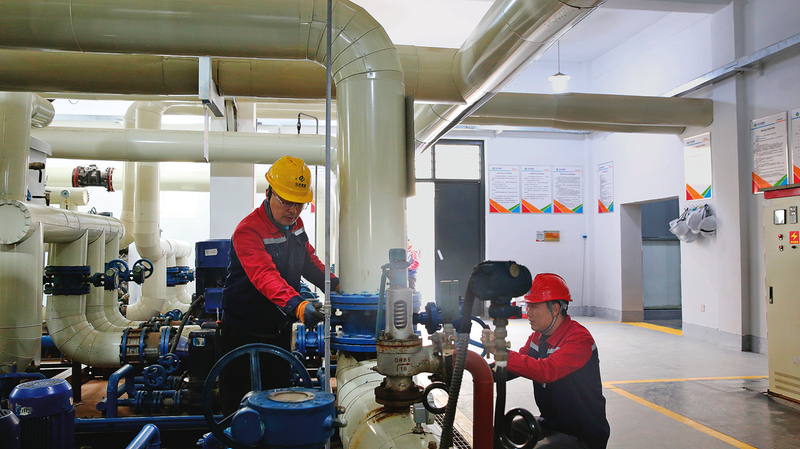 10月20日,在吴忠市利通区裕西换热站,中环寰慧(吴忠)节能热力有限公司工作人员进行管网检修与精细调节。        本报讯(记者 冯荣 张丽坤)10月20日,随着申能吴忠热电厂循环泵机组平稳启动,中环寰慧(吴忠)节能热力有限公司同步开启供热阀门,标志着吴忠市区今冬供热系统正式投入运行。
