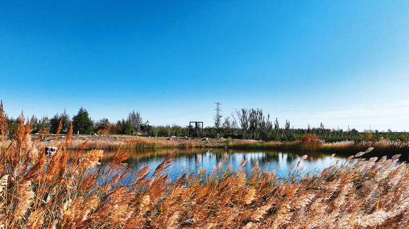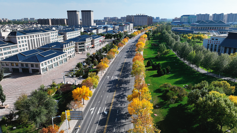 深秋时节,吴忠大地在蓝天映衬下铺展出一幅绚烂画卷,城市韵律与自然诗意和谐共鸣。