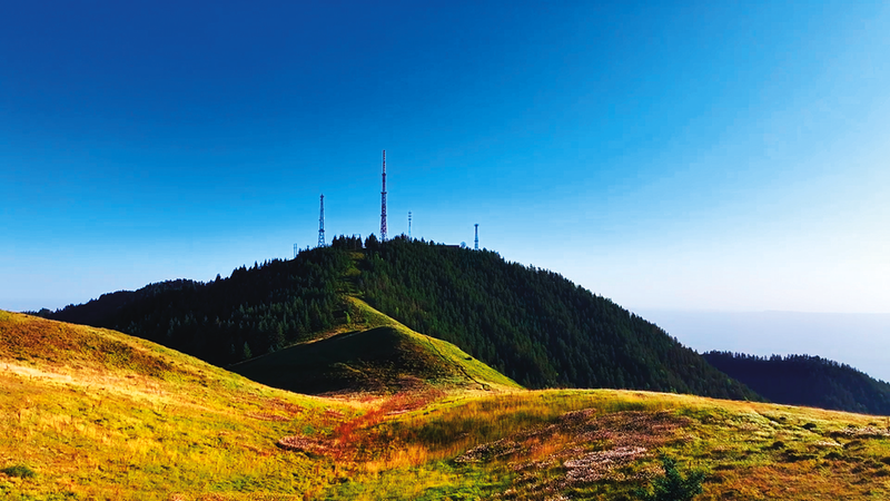 在罗山国家级自然保护区,蓝天下山间草甸尽染金黄(摄于10月22日)。