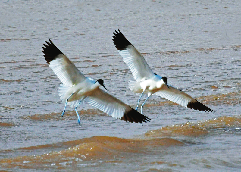 反嘴鹬翩翩起舞。