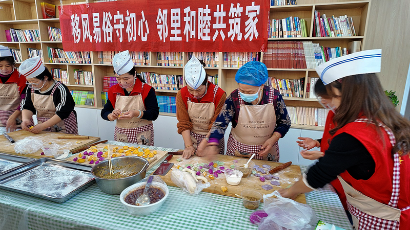 12月16日,吴忠市利通区金星镇金星花园社区开展以“移风易俗守初心 邻里和睦共筑家”为主题的迎冬至活动,大家一起包饺子。