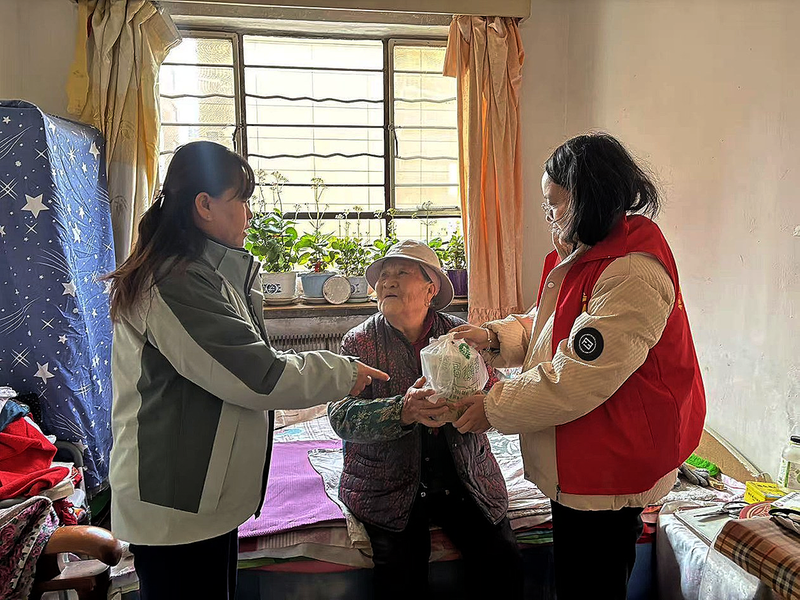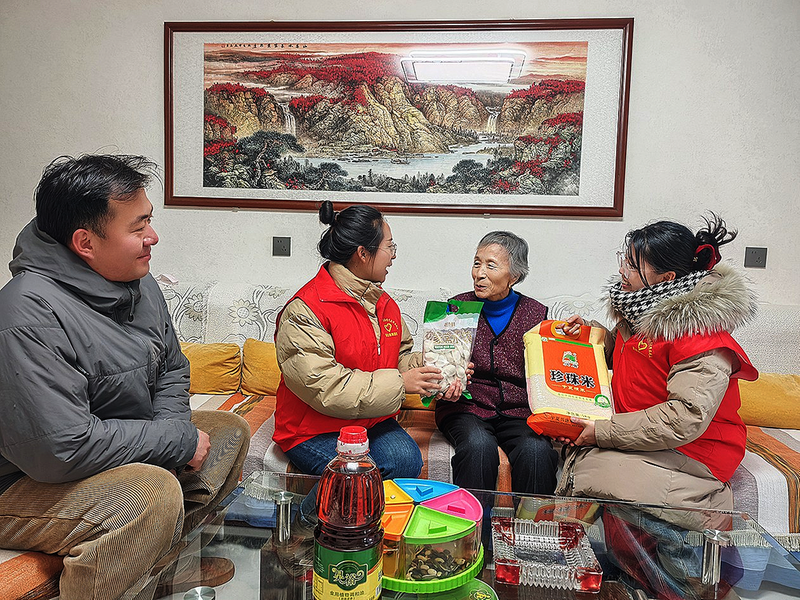 12日17日,吴忠市利通区胜利镇中华社组织志愿者为老人送去冷冻水饺等慰问品。