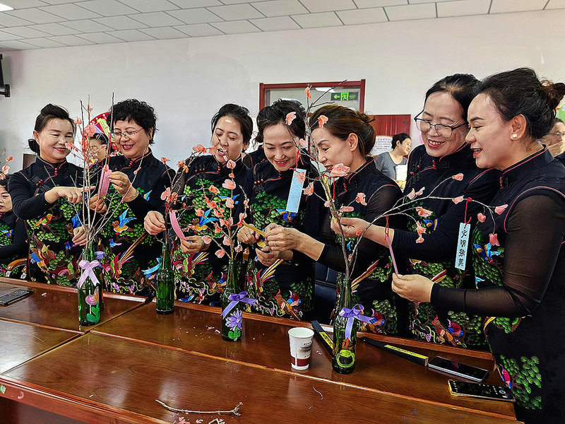 12月18日,盐池县南关社区开展以“冬至共聚话新风 同心共铸中华情”为主题的迎冬至活动,居民们一起制作腊梅花。