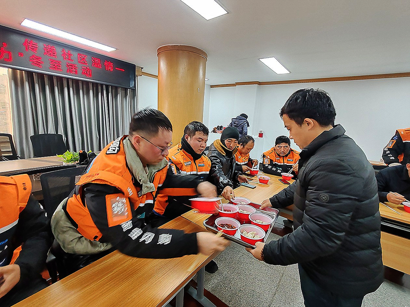 12月19日,青铜峡市银河社区组织“银河护卫队”志愿者为辖区独居老人、空巢老人、老党员等送上暖心饺子迎接冬至到来。