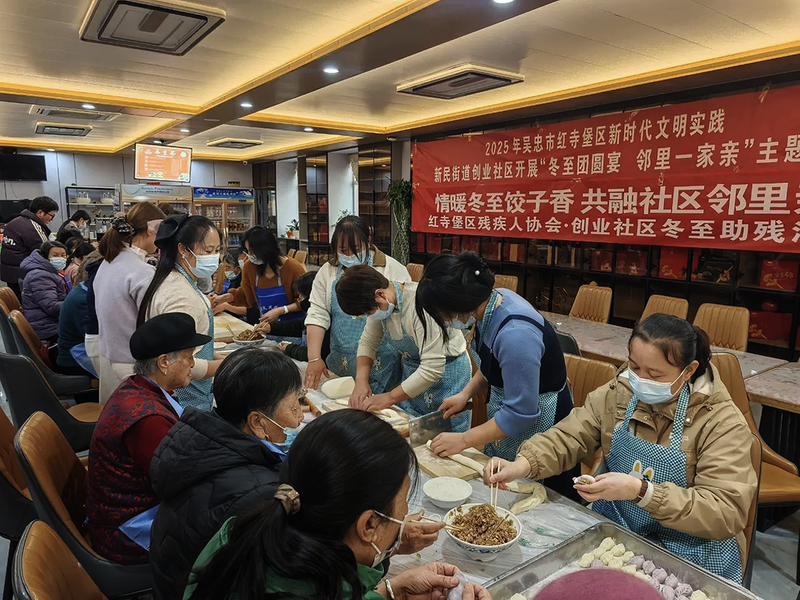 12月19日,吴忠市红寺堡区新民街道创业社区开展以“冬至团圆宴 邻里一家亲”为主题的迎冬至活动。