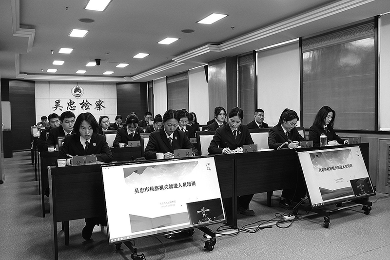 日前,吴忠市人民检察院开展全市检察机关新进人员培训。 本次培训立足检察工作实际,围绕政治理论、公文写作、纪律规矩、意识形态、道德礼仪等专题,采用辅导授课、观看视频、交流研讨等方式,为新进人员带来全方位指导,促进新进人员提高思想政治素质,强化纪律意识,迅速适应工作岗位,系好检察职业生涯的“第一粒扣子”。 闫磊 摄