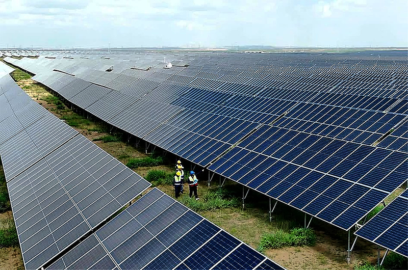 湖南能源集团红寺堡区300万千瓦风光新能源基地一期100万千瓦光伏项目于2024年7月开工,目前项目全面投产,每年可为电网提供清洁电能约19亿度,减少二氧化碳排放量约162万吨(摄于12月1日)。