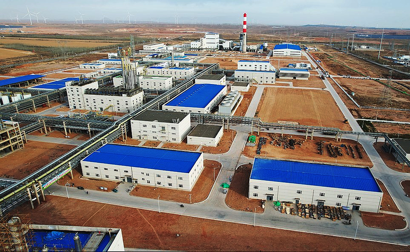 在宁夏金昱元化工集团股份有限公司产业链融合发展项目现场,工人有序作业。该项目是我市今年重点项目,分期建设30万吨/年聚甲醛项目、化工搬迁升级改造项目、耗氯精细化工项目等,着力打造智能化、绿色化的现代化工生产基地(摄于12月2日)。