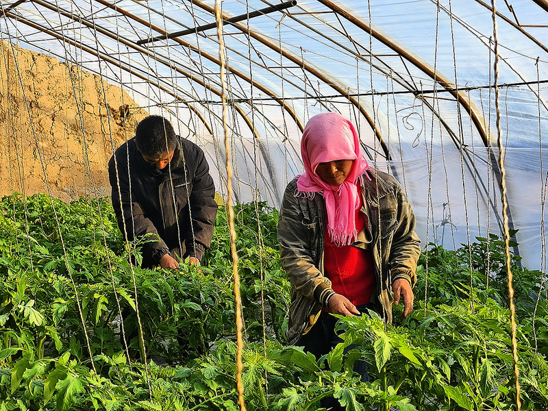 1月6日,在青铜峡市大坝镇蒋东村的设施温棚内,种植户为西红柿打岔。近年来,青铜峡市以设施蔬菜智能化示范基地建设项目为依托,通过强化设施标准、优化种植管理、深化农户联结等方式,推动设施农业向规范化、规模化、现代化迈进。 周志敏 邹丽 摄