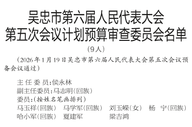 吴忠市第六届人民代表大会第五次会议计划预算审查委员会名单