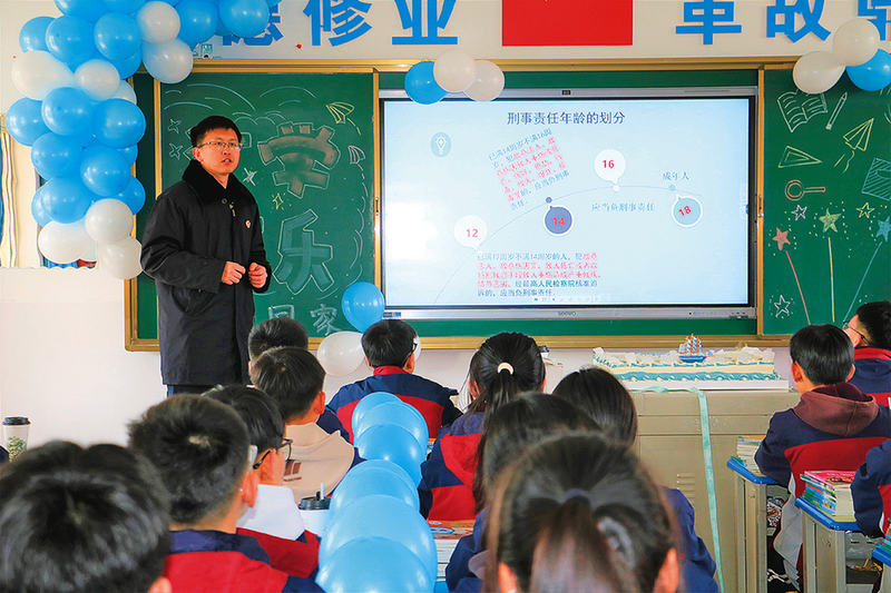 盐池县人民检察院干警在盐池县第三中学开展“以法之名保护少年的你”法治教育活动。